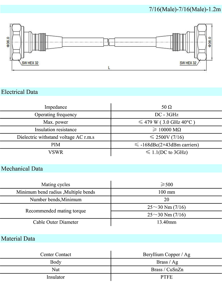 上一个:DIN 716 (M) --N (M) RF Coaxial Low Pim Test Cable Assembly