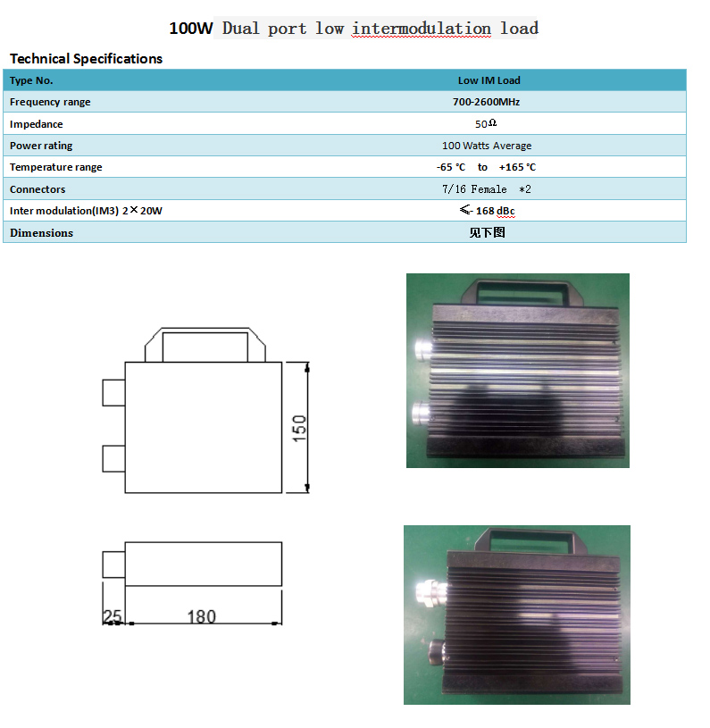 DIN 716 L29 Female Low Pim RF Coaxial Load Connector 100W