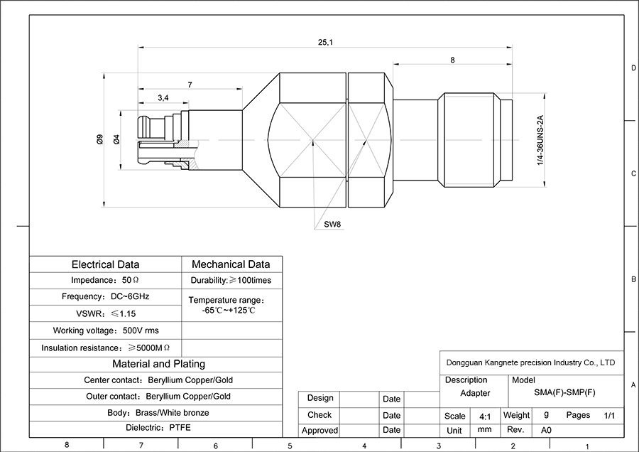 SMP Female Jack to SMA Female Jack RF Coaxial Connector