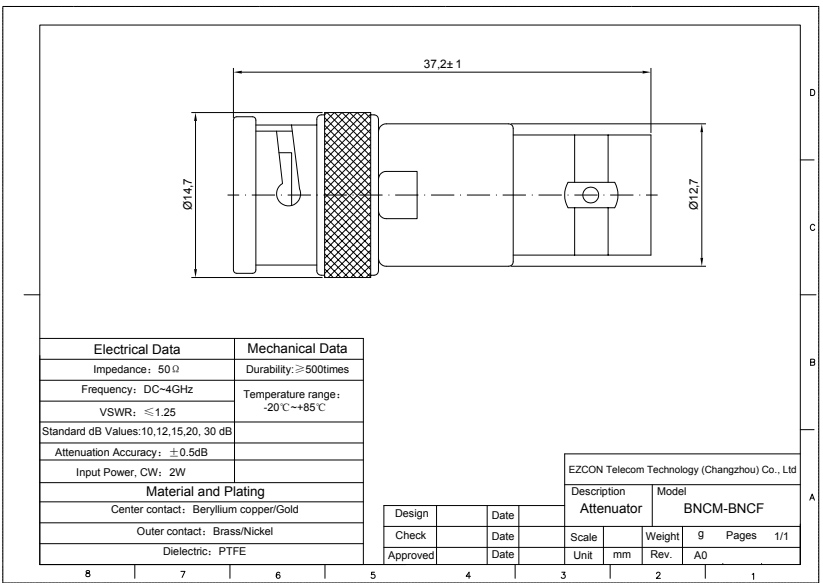 DC-4GHz, 2 Watts BNC Male to BNC Female BNC Connector Attenuator